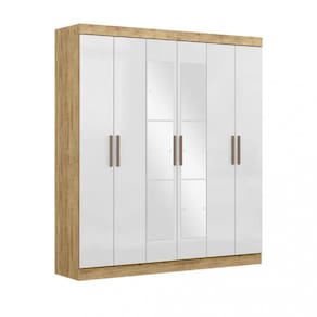 Características: Estrutura do material em MDF 6 Portas Corrediças Telescópicas 2 Cabideiros em madeira 1 Calceiro 2 Gavetas internas 4 Prateleiras Puxadores em Abs 6 espelho 48X25X3 cm