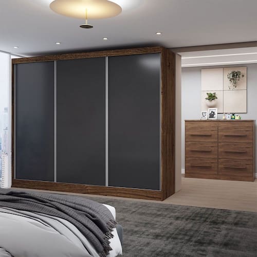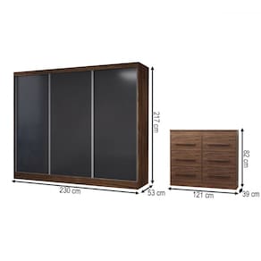O(a) Guarda-Roupa Casal Europa 3 Portas 10 Gavetas 100% Mdf Castanho/Preto - Loja é produzido em 100% MDF na escala de brilho Semi-Brilho, e possui um grau de dificuldade de montagem: Médio.