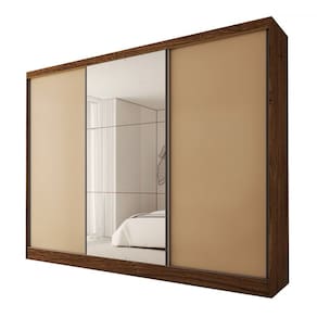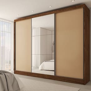 O(a) Guarda-Roupa Casal Europa 3 Portas 4 Gavetas 100% Mdf com Espelho Castanho/Nude - Loja é produzido em MDF na escala de brilho Semi-Brilho, e possui um grau de dificuldade de montagem: Médio.