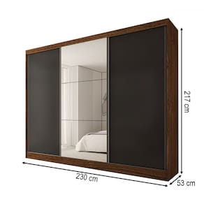 O(a) Guarda-Roupa Casal Europa 3 Portas 4 Gavetas 100% Mdf com Espelho Castanho/Preto - Loja é produzido em MDF na escala de brilho Semi-Brilho, e possui um grau de dificuldade de montagem: Médio.