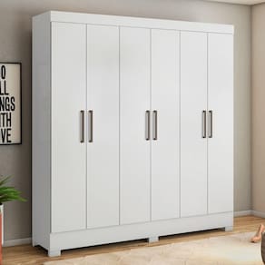 Guarda Roupa Casal Ferrara Branco Guarda Roupa que se destaca pela configuração interna, oferecendo excelente distribuição com gavetas e diversas possibilidades para utilização das prateleiras. Com 6 portas e 3 gavetas que acompanham corrediças metálicas. O móvel é confeccionado em MDP de alto padrão e possui acabamento resistente, proporcionado por sua pintura UV. Medidas Do Produto: