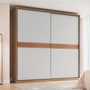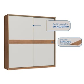 Caracter?sticas: Estrutura em MDP 2 Portas de Correr flex Corredi?as telesc?picas Cabideiro aluminio Perfil puxador em alum?nio 2 Gavetas 8 Prateleiras Espa?o para sapatos * Obs, as portas s?o flex podendo escolher a tonalidade no ato da montagem.