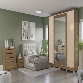 🌟 Benefícios e Funcionalidades Amplo Espaço: Com nichos diferentes para sapatos e roupas dobradas, além de cabideiros metálicos para roupas maiores, oferece excelente espaço para organização. Durabilidade: Produzido em MDP 15mm e com sete camadas de pintura, garante longa vida útil. Design Moderno: As portas com textura de madeira e tonalidades flex adicionam um toque de elegância ao quarto. Praticidade: As gavetas com corrediças telescópicas abrem completamente, facilitando o acesso aos itens armazenados.