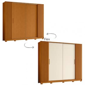 Com o Guarda Roupa Casal Flex Ripado com Pés 4 Portas Jacaranda Albatroz, tudo fica mais elegante e funcional. As portas laterais com acabamento ripado e dobradiças slow motion dão um toque de luxo. Os trilhos de alumínio, perfis ante empeno e 4 gavetas com corrediças telescópicas proporcionam durabilidade e funcionalidade. Os puxadores, o cabideiro, a moldura e os pés são versáteis. Seu diferencial são as portas flex.