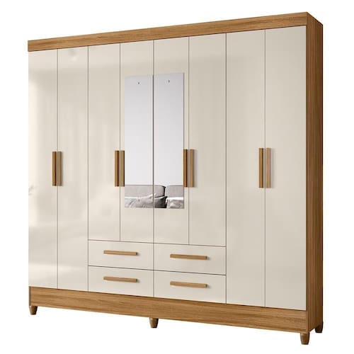 Tipo de Guarda Roupa: Casal | Tonalidade: Multicolorido | Quantidade de Portas: 8 | Fabricante: Moval Cor: Freijó/Off White