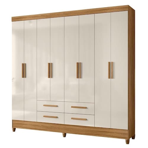 Tipo de Guarda Roupa: Casal | Tonalidade: Multicolorido | Quantidade de Portas: 8 | Fabricante: Moval Cor: Freijó/Off White
