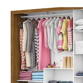 Guarda-Roupa Fortaleza, combinação perfeita entre conforto e conveniência para o quarto. O Guarda-Roupa Fortaleza com 3 portas de correr, 2,00m de altura, 1,79m de largura e 0,47m de profundidade combinado com 6 prateleiras e um amplo cabideiro, possui soluções inovadoras Para atender as mais exigentes necessidades. Cabideiros com 1,11m com suporte no centro. Não enverga com peso dos moletons, ternos, sobretudos, camisas e acessórios. Prateleiras ideais para colocar roupas de banho, perfumes, kits de maquiagem, caixinhas com acessórios e bolsas menores, e ainda com divisão ele/ela, proporcionando ao casal acomodar todas as roupas e acessórios de forma mais organizada e com maior visibilidade. Sapateiras com espaço ideal para guardar desde mala de viagem até coleções de tênis, sapatos, ou outros acessórios.