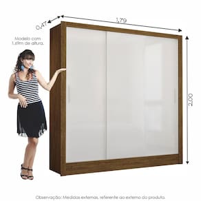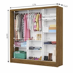 Guarda-Roupa Fortaleza, combinação perfeita entre conforto e conveniência para o quarto. O Guarda-Roupa Fortaleza com 3 portas de correr, 2,00m de altura, 1,79m de largura e 0,47m de profundidade combinado com 6 prateleiras e um amplo cabideiro, possui soluções inovadoras