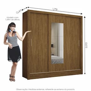 Guarda Roupa Casal Fortaleza 3 Portas Com Espelho Carioca Cinamomo Guarda Roupa Casal Fortaleza 3 Portas Com Espelho Carioca Moveis Guarda-Roupa Fortaleza Portas com espelho, combinacao perfeita entre conforto e conveniencia para o quarto. O Guarda-Roupa Fortaleza com 3 portas de correr, 2,00m de altura, 1,79m de largura e 0,47m de profundidade combinado com 6 prateleiras e um amplo cabideiro, possui solucoes inovadoras para atender as mais exigentes necessidades. Cabideiros com 1,11m com suporte no centro. Nao enverga com peso dos moletons, ternos, sobretudos, camisas e acessorios. Prateleiras ideais para colocar roupas de banho, perfumes, kits de maquiagem, caixinhas com acessorios e bolsas menores, e ainda com divisao ele/ela, proporcionando ao casal acomodar todas as roupas e acessorios de forma mais organizada e com maior visibilidade. Sapateiras com espaco ideal para guardar desde mala de viagem ate colecoes de tenis, sapatos, ou outros acessorios.