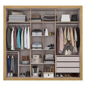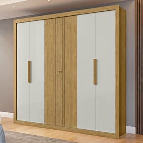 Caracter?sticas: Estrutura: MDP 6 Portas 3 Gavetas Puxadores em MDF Corredi?as telesc?picas Cabideiro em alum?nio Porta com detalhe usinado Pintura UV texturizada Peso suportado por prateleiras: 7kg Peso suportado por gavetas: 4kg