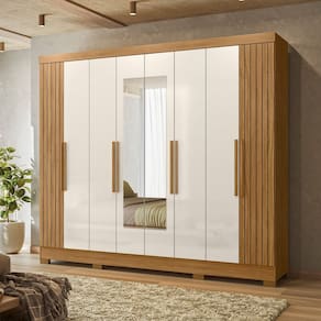 Guarda Roupa Casal Frisado com Espelho 8 Portas e Pés Diplomata Moval. Com 4 gavetas internas que garantem organização e funcionalidade, este móvel conta com puxadores em MDF, que combinam estilo e resistência. Seus pés proporcionam estabilidade e durabilidade, enquanto as corrediças metálicas asseguram um funcionamento suave e eficiente. elevando ainda mais a funcionalidade e a estética do ambiente. Aproveite esta oportunidade para transformar seu espaço!