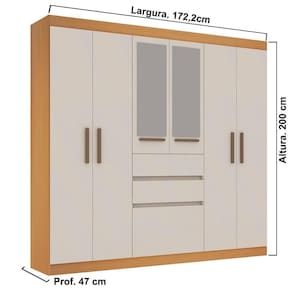 - A entrega será realizada até a porta de entrada ou portaria do endereço informado. Caso autorizado pela portaria, o produto será deixado no andar térreo. O transporte até o interior do imóvel é responsabilidade do cliente. Inclui manual de montagem: Sim | Profundidade: 47 cm | Altura: 200 cm | Requer montagem: Sim | Comprimento: 47 cm | Fabricante: Genialflex | Material: MDP | Cor: Freijó/Branco | Produto: Guarda-Roupa | Altura do Produto (cm): 200 | Comprimento do Produto (cm): 47 | Material para Filtro: MDP | batteries_required: Não | Largura do Produto (cm): 172,2 | Altura do Produto Com Embalagem (cm): 21,2 | Comprimento do Produto Com Embalagem (cm): 201,7 | included_components: Ferragens | Materiais do corpo: MDP | number_of_boxes: 3 | part_number: 0647E.0001 | is_assembly_required: Sim | item_weight: 94 | Descrição do Tamanho: 172,2 x 200 x 47 | is_fragile: Não | Tipo de móveis de cozinha: Guarda-Roupa | Largura do Produto Com Embalagem (cm): 60,1 | model_number: Não aplicável | number_of_items: 1 | Peso Produto Com Embalagem (Kg): 95 | Peso do Produto (Kg): 94 | external_testing_certification: Não aplicável | item_depth_width_height: 47 x 172,2 x 200 | bullet_point_#0: Amplo espaço interno: são 7 portas, 2 gavetas e cabideiros de madeira maciça para organizar roupas, sapatos e acessórios com praticidade. | bullet_point_#1: Beleza e funcionalidade: 2 espelhos já inclusos que ampliam o ambiente, facilitam na hora de se arrumar e deixam o quarto mais sofisticado. | bullet_point_#2: Qualidade Genialflex: estrutura resistente em MDP, portas e gavetas em branco brilho Laca, puxadores champanhe e acabamento em pintura UV para maior durabilidade. | Manufacturer: Genialflex | power_source_type: Não aplicável | color: Freijó/Branco | Largura: 172,2 cm