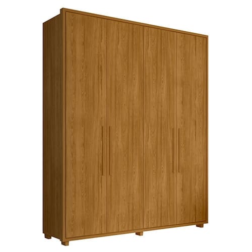 ESPECIFICAÇÕES: Estrutura em MDF Pintura UV 4 Portas Dobradiças metálicas de 35mm com sistema de amortecimento Puxadores em MDF nas portas 3 Gavetas internas Corrediças telescópicas Cabideiro extensíveis Cabideiro de alumínio Interna com nichos e prateleiras Moldura envoltória de 25mm Pés em poliestireno de 50mm