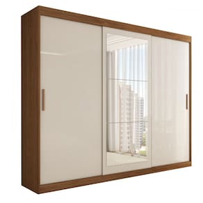 Guarda-Roupa Casal Harvard 3 Portas 2 Gavetas com Espelho 100% Mdf Off White/Nogueira - Panorama Móveis - Bege