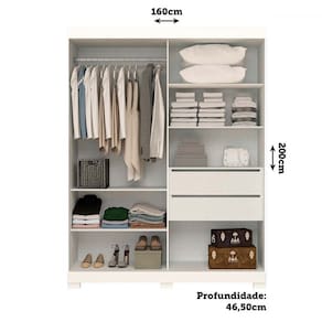 - Acompanha: 1 Guarda-Roupa, Kit Ferragens e Manual de Montagem