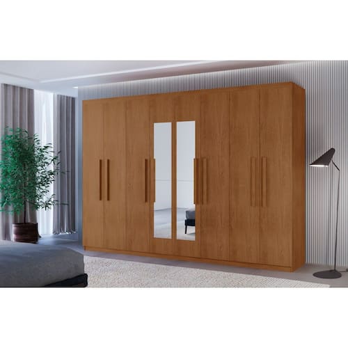 O Guarda-Roupa Hera Premium é sinônimo de praticidade e elegância. Produzido em 100% MDF, ele oferece um design minimalista com um toque de requinte que se destaca em qualquer ambiente. Com 8 portas, 4 gavetas e 4 cabideiros, sua ampla e bem planejada divisão interna proporciona o espaço ideal para guardar seus pertences com organização e eficiência. E seu destaque a parte, com um espelho central que facilita o processo de se arrumar, além de facilitar a sua rotina, o Hera Premium traz harmonia e sofisticação ao seu lar, tornando-o um aliado perfeito para quem valoriza um estilo de vida organizado e estiloso.
