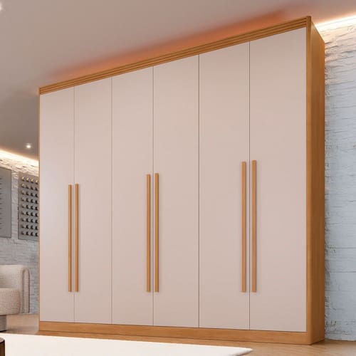 O(a) Guarda-Roupa Casal Ibiza 6 Portas 6 Gavetas Cinamomo/Off White - Pnr Móveis é produzido em MDP na escala de brilho Fosco, e possui um grau de dificuldade de montagem: Médio.