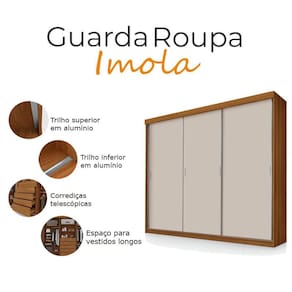 Na hora de trocar seu guarda roupa conte com a gente! Apresentamos para você este lindo guarda roupa da linha Ímola. Possuindo três portas de correr facilitando o acesso ao seu interior. Possui cinco gavetas com corrediças telescópicas, garantindo suavidade ao abrir e fechar. Com nicho central para organizar seus pertences, possi amplos espaço interno para acomodar de forma organizada suas roupase objetos. Desenvolvido em 100% MDF, é fabricado pela Luapa com um design moderno e minimalista, dando aquele toque de elegância para seu quarto, nao perca mais tempo venha garantir ja o seu!
