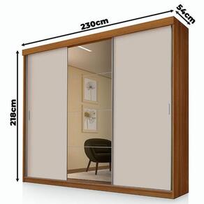 Guarda Roupa Casal Ímola 3 Portas de Correr com Espelho Carvalho Off White Pina - Luapa