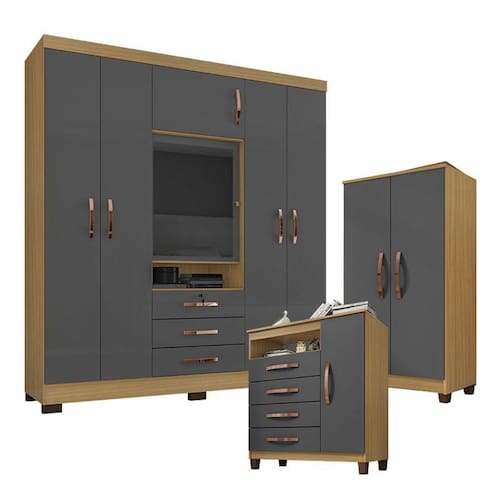 Guarda Roupa Casal Imperial Carvalho Americano Grafite – Incorplac