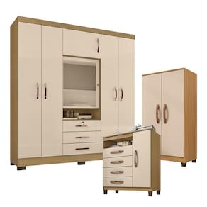 Guarda Roupa Casal Imperial com Armário Multiuso Recife e Cômoda Sapateira Cannes Carvalho Americano Off White - Incorplac