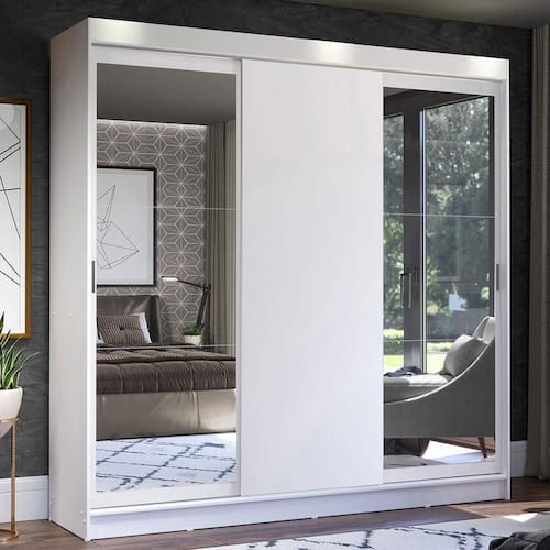 - Três (3) portas de correr com sistema anti-descarrilhamento, sendo duas delas com espelhos