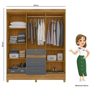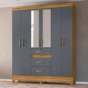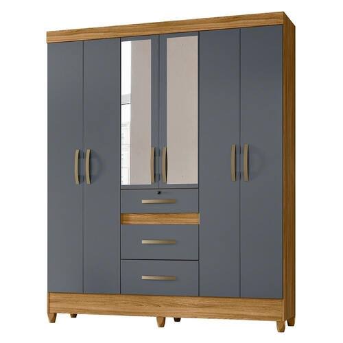 Tipo de Guarda Roupa: Casal | Tonalidade: Multicolorido | Quantidade de Portas: 6 | Fabricante: Moval Cor: Freijó/Cinza