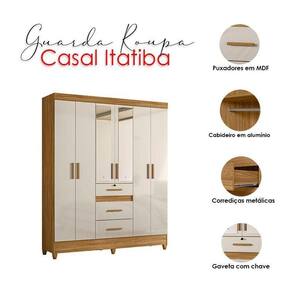 Guarda Roupa Casal Itatiba 6 Portas Freijó Off White com Espelho - Moval