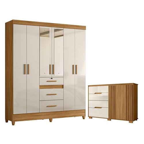 Guarda Roupa Casal Itatiba com espelho e Cômoda Texas Freijó Off White – Moval