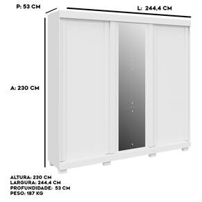 Materiais da estrutura: MDF | Tipo de produto: Guarda-roupa Cor: Branco
