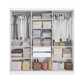 Perfeito para quem busca por muito espaço, na parte interna ele possui divisões iguais dos dois lados, o que garante facilidade na organização e divisão de espaço. E com nichos de tamanhos diferentes, ideais para guardar calçados e roupas dobradas nas prateleiras, ele conta com dois cabideiros metálicos, ideal para peças maiores, como vestidos ou casacos, garantindo mais praticidade. Muito versátil, esse modelo ainda possui duas gavetas internas, facilitando a organização de peças menores.
