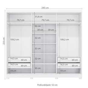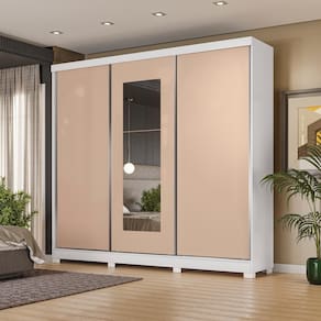 Deixe seu quarto ainda mais lindo, moderno e organizado com a linha de Guarda-Roupas 100% MDF CB01R584 da Loja Oficial Kappesberg. Com o tamanho ideal para um quarto de casal, são 2,23m de altura, 2,45m de largura e 52cm de profundidade, todo produzido em chapa MDF de 15mm, o que garante mais robustez, durabilidade e um melhor acabamento. Com três portas de correr e quatro gavetas, o grande diferencial deste modelo fica por conta das portas reversíveis, podendo optar entre a cor branca ou macadâmia na hora de montar o seu guarda-roupa. Com pintura de sete camadas, tanto na parte interna quanto na externa, seu acabamento brilho garante beleza e facilidade no momento da limpeza, além de luminosidade ao espaço. Com caixaria na cor branca, as portas são reversíveis, com opção entre o branco ou macadâmia. E para quem gosta de muito espaço, esse é o modelo perfeito. Com divisões internas iguais dos dois lados, ele possui nichos de tamanhos diferentes, ideais para guardar calçados e roupas dobradas nas prateleiras. Os cabideiros, metálicos e com suporte interno, são perfeitos para peças maiores, como casacos e vestidos. E nas gavetas, com corrediças telescópicas, você organiza acessórios e peças menores com facilidade, deixando seu ambiente sempre organizado. Nas portas, o destaque fica para o puxador em alumínio e o perfil metálico anti-empeno, garantindo mais durabilidade e resistência, sendo a opção perfeita para renovar seu quarto. O espelho de corpo inteiro, além de facilitar o seu dia, garante a sensação de amplitude de espaço, e os pés em polipropileno, facilitam a limpeza e completam a qualidade e beleza dos Móveis Kappesberg.