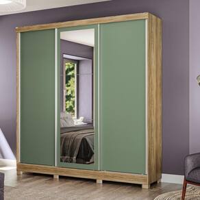 E para completar o charme do guarda-roupa, ele conta com corpo na cor nogueira, com pintura touch, que traz a textura dos veios da madeira, enquanto suas portas são reversíveis, possibilitando escolher entre as cores verde oliva, com pintura fosca, ou nogueira, com acabamento touch, garantindo muita beleza para seu espaço. E com espelho de corpo inteiro e pés em polipropileno, esse modelo será o destaque do seu espaço, proporcionando beleza e praticidade ao seu dia a dia.