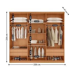 Dimensões do Roupeiro: Altura: 234 cm Largura: 220 cm Profundidade: 47 cm