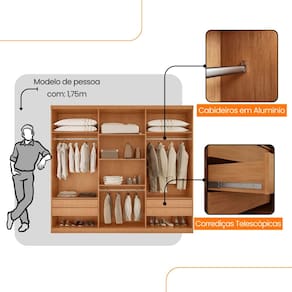 Características: Material da Estrutura: 100 MDF Material das Corrediças: Telescópica Material dos Cabideiros: Alumínio Possui espelho: Não