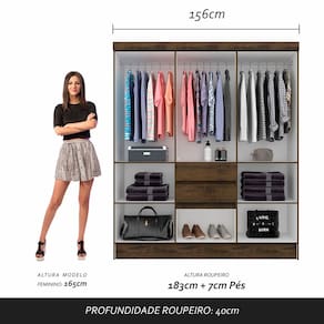 Medidas do Guarda-Roupa Montado: A:190cm | L:156cm | P:40cm