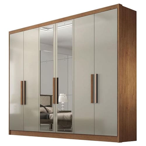 Guarda Roupa Casal Linea 6 Portas 8 Gavetas Cumaru 25 Fendi com Nicho e Espelho – Novo Horizonte