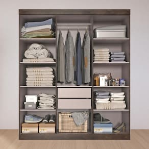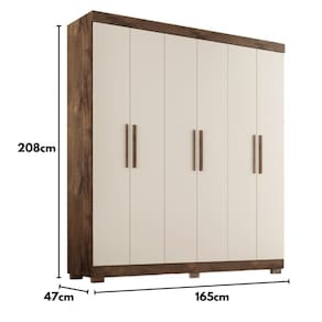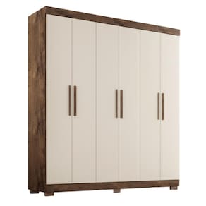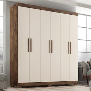 6 portas de dobradiças 9 prateleiras 2 gavetas com Corrediças Metálicas Puxadores em MDF Fabricado em MDP Acabamento Touch Alto-Relevo ou Alto Brilho UV (nas cores Branco e Off-white) e Semibrilho parte interna Pés inclusos 2 cabideiros de madeira Fácil montagem