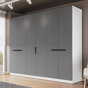 O(a) Guarda-Roupa Casal Lisboa 6 Portas 4 Gavetas Branco/Cinza - Politorno é produzido em MDF e MDP na escala de brilho Semi-Fosco, e possui um grau de dificuldade de montagem: Médio.