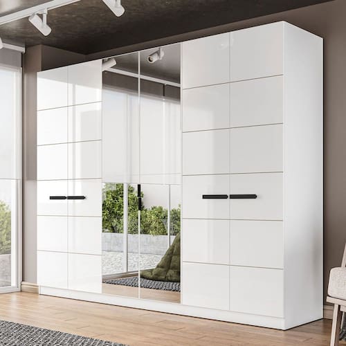 O(a) Guarda-Roupa Casal Lisboa 6 Portas 4 Gavetas com Espelho Branco - Politorno é produzido em MDF e MDP na escala de brilho Semi-Fosco, e possui um grau de dificuldade de montagem: Médio.