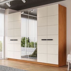 O(a) Guarda-Roupa Casal Lisboa 6 Portas 4 Gavetas com Espelho Freijó/Creme - Politorno é produzido em MDF e MDP na escala de brilho Semi-Fosco, e possui um grau de dificuldade de montagem: Médio.