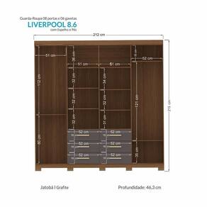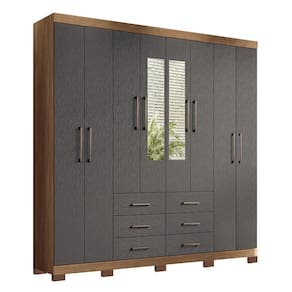 Guarda Roupa Casal Liverpool 8 Portas 6 Gavetas Jatobá/grafite Com Espelho E Pés - Santos Andirá Jatobá/grafite