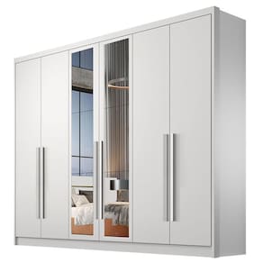 Guarda Roupa Casal Livorno 6 Portas 4 Gavetas Neve com Nicho e Espelho – Novo Horizonte