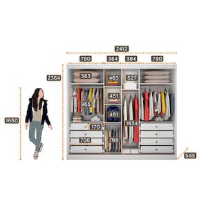 Guarda Roupa Casal Londres 3 Portas 8 Gavetas Neve ? Novo Horizonte