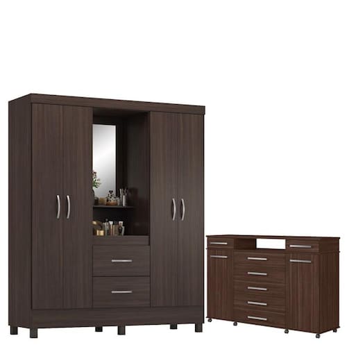 Guarda Roupa Casal Lord com Cômoda London Café - Demóbile