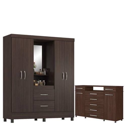 MDPGuarda Roupa Casal Lord com Cômoda London Café - Demóbile