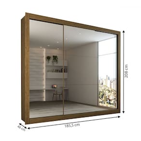 O(a) Guarda-Roupa Casal Louise 3 Portas de Correr 4 Gavetas Espelhado Cinamomo - Loja é produzido em MDP na escala de brilho Brilho, e possui um grau de dificuldade de montagem: Médio.
