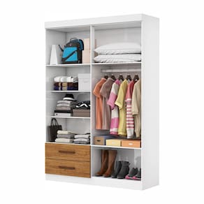 A linha Lu é ideal para quem procura um produto compacto e funcional. Possui 2,00m de altura, 1,185m de largura e 0,47m de profundidade combinado com 2 gavetas, 2 prateleiras e um grande cabideiro, deixando o produto com uma ótima divisão interna. O maleiro é ideal para guardar malas, cobertores, edredons. O cabideiro além de resistente, é ideal para pendurar pares de blusas, camisas acessórios. As prateleiras são perfeitas para colocar roupas como blusas, shorts, regatas, kits de maquiagem, toalhas, caixinhas com acessórios e bolsas menores. As gavetas fixadas sobre corrediças metálicas, são ideais para guardas blusas dobradas, shorts, malhas e roupas íntimas. Estrutura do produto em MDP.