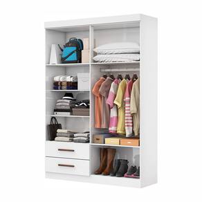 A linha Lu é ideal para quem procura um produto compacto e funcional. Possui 2,00m de altura, 1,185m de largura e 0,47m de profundidade combinado com 2 gavetas, 2 prateleiras e um grande cabideiro, deixando o produto com uma ótima divisão interna. O maleiro é ideal para guardar malas, cobertores, edredons. O cabideiro além de resistente, é ideal para pendurar pares de blusas, camisas acessórios. As prateleiras são perfeitas para colocar roupas como blusas, shorts, regatas, kits de maquiagem, toalhas, caixinhas com acessórios e bolsas menores. As gavetas fixadas sobre corrediças metálicas, são ideais para guardas blusas dobradas, shorts, malhas e roupas íntimas. Estrutura do produto em MDP.