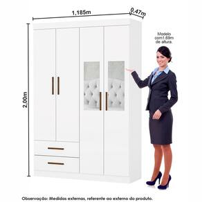 Guarda Roupa Casal Lu 4 Portas 2 Gavetas com Espelho Carioca Móveis - Branco